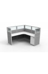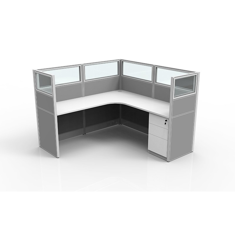 CUBICLES ARE STYLED AS SHOWN WITH BEIGE FABRIC/ SILVER SURFACES AND 3 DRAWER PEDS (6X8 ONLY), GRAY METAL TRIM - PICTURES OF ACTUAL COLORS AVAILABLE UPON REQUEST